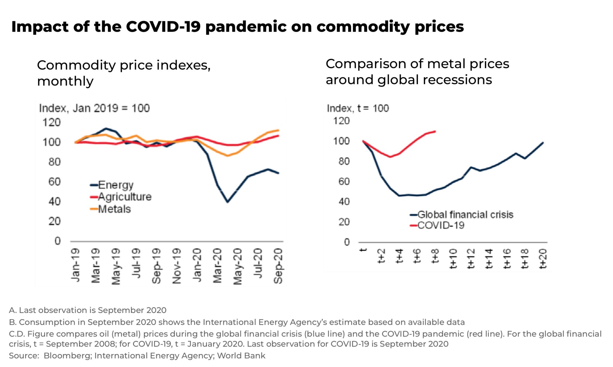 After an initial significant shock from the spread of Covid-19 and subsequent economic restrictions, almost all commodity prices recovered in the third quarter of 2020. In particular, according to the World Bank’s Commodity Market Outlook 2020: “Metal prices recovered rapidly in response to a faster-than-expected pick up in China’s industrial activity.”